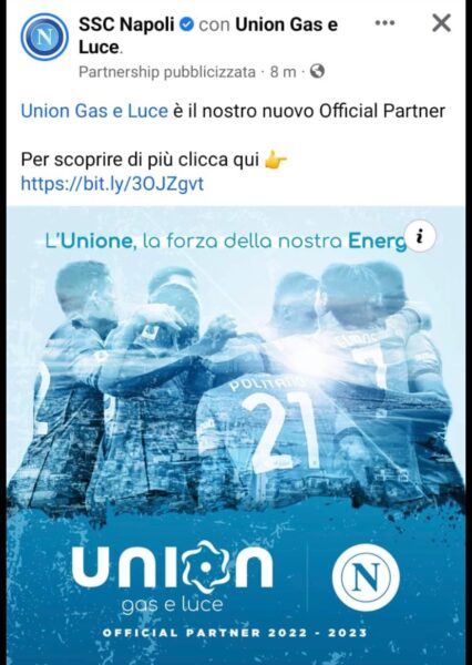 Una partnership, quella con la SSC Napoli che proietta Union Gas e Luce in un contesto internazionale.