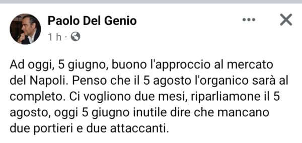 A criticare, in chiave ironica, l’operato del calciomercato dei partenopei è il giornalista Paolo Del Genio, che sul suo profilo Facebook scrive: