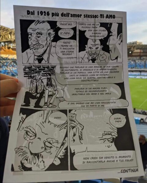 “Sei l’emblema della mia città, vinca o perda non perderà mai”, recita il nuovo coro che esordirà questa sera nelle mura amiche del Maradona, che spera di poter vivere una grande prestazione della squadra anche questa sera.