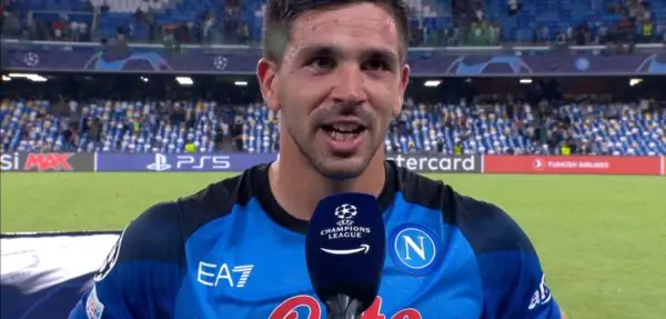 Durante il post-partita di Napoli-Liverpool, è intervenuto ai microfoni di Amazon Prime Video il Cholito Giovanni Simeone, l’argentino ha coronato dopo tante fatiche e sacrifici, il suo sogno di siglare una rete in Champions League ed è apparso molto emozionato, quasi senza parole.