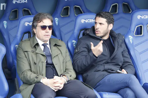 EMPOLI, ITALY - APRIL 24: Cristiano Giuntoli of SSC Napoli and Pietro Accardi of Empoli FC during the Serie A match between Empoli FC and SSC Napoli at Stadio Carlo Castellani on April 24, 2022 in Empoli, Italy. (Photo by Gabriele Maltinti/Getty Images)