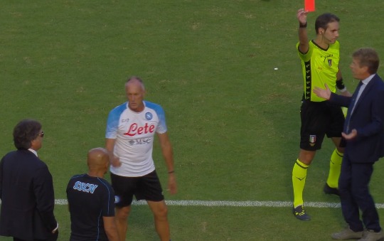 Al termine dell’animata discussione, l’arbitro ha deciso di espellere un componente per parte delle due panchine: sulla panchina azzurra è stato espulso Spalletti per doppia ammonizione, mentre sulla panchina ligure è stato espulso Fabrizio Lorieri, vice allenatore di Luca Gotti.