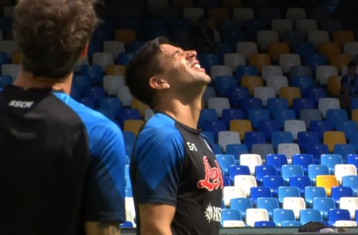 Durante il riscaldamento pre partita nella sfida tra Napoli e Spezia l’attaccante del Napoli, Giovanni Simeone, si è reso protagonista di un gesto a sorpresa. Il Cholito infatti durante il riscaldamento, ha cantato insieme ai tifosi presenti allo stadio la famosa canzone “La Mano de Dios” che durante ogni partita viene fatta risuonare per tutto lo stadio in onore di Maradona.