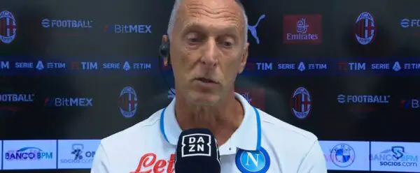 Marco Domenichini, allenatore in seconda del Napoli, ha parlato ai microfoni di DAZN al termine di Milan-Napoli, gara valida per la settima giornata del campionato di Serie A 2022/2023. Di seguito quanto evidenziato dalla nostra redazione: