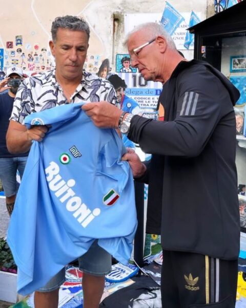 L’ex bomber, questa mattina, si è recato nei Quartieri Spagnoli per omaggiare il suo ex compagno di squadra, Diego Armando Maradona, a cui era legatissimo anche al di fuori del campo.