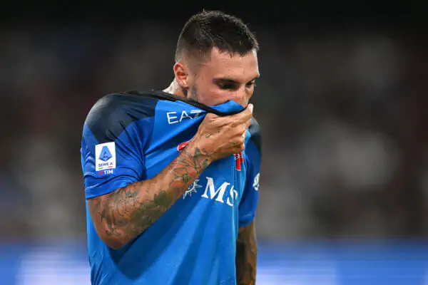 NAPLES, ITALY - AUGUST 31: Matteo Politano of Napoli reacts during the Serie A match between SSC Napoli and US Lecce at Stadio Diego Armando Maradona on August 31, 2022 in Naples, Italy. (Photo by Francesco Pecoraro/Getty Images)