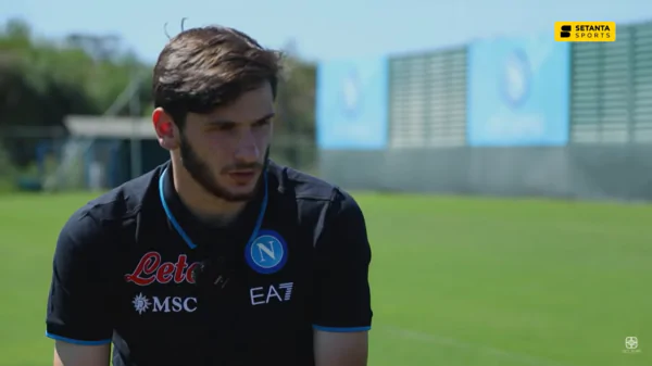 Alla domanda relativa all’allenatore del Napoli, Khvicha ha risposto: “Mi ha detto che ho un buon dribbling e che gioco bene in 1 vs 1, ma devo giocare di più per la squadra, perché ci sono giocatori forti ed è giusto che mi metta al servizio della squadra. Mi ha spiegato che dovrei aiutare di più la squadra in difesa. Faccio tutto quello che mi dicono gli allenatori“.