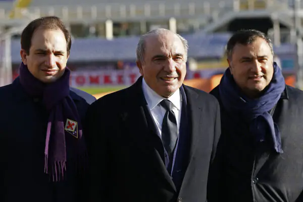 FLORENCE, ITALY - JANUARY 13: Rocco Commisso (C) president of ACF Fiorentina and Joseph Commisso (L) anf Joe Barone ahead of the Coppa Italia match between ACF Fiorentina and FC Internazionale at Artemio Franchi on January 13, 2021 in Florence, Italy. Sporting stadiums around Italy remain under strict restrictions due to the Coronavirus Pandemic as Government social distancing laws prohibit fans inside venues resulting in games being played behind closed doors. (Photo by Gabriele Maltinti/Getty Images)