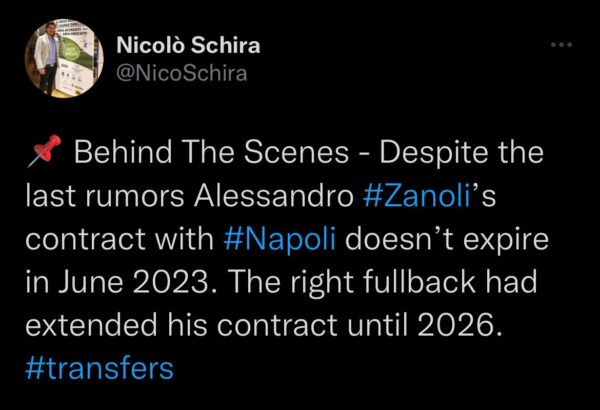 Tuttavia, come riportato da Nicolò Schira, noto esperto di calciomercato, in realtà il giocatore aveva già rinnovato con il Napoli e il suo contratto scade nel 2026.
