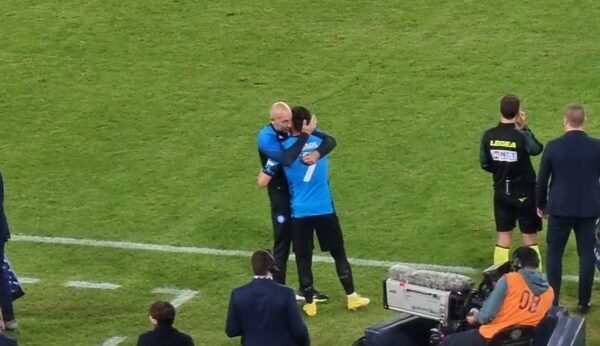 Subito dopo la terza rete, Baldini si è avvicinato al numero 7 azzurro (pronto a entrare in campo proprio in quegli istanti), evidentemente motivandolo e abbracciandolo a lungo, alla luce probabilmente anche delle polemiche social di queste ore.