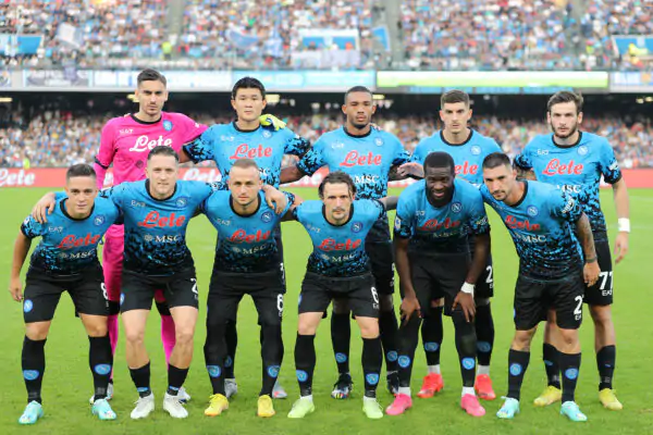 NAPLES, ITALY - OCTOBER 16: SSC Napoli team before the Serie A match between SSC Napoli and Bologna FC at Stadio Diego Armando Maradona on October 16, 2022 in Naples, Italy. (Photo by Francesco Pecoraro/Getty Images)