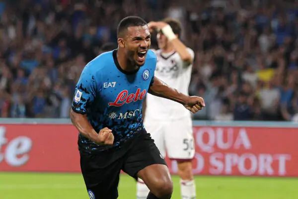 NAPLES, ITALY - OCTOBER 16: Juan Jesus of SSC Napoli celebrates after scoring the 1-1 goal during the Serie A match between SSC Napoli and Bologna FC at Stadio Diego Armando Maradona on October 16, 2022 in Naples, Italy. (Photo by Francesco Pecoraro/Getty Images)