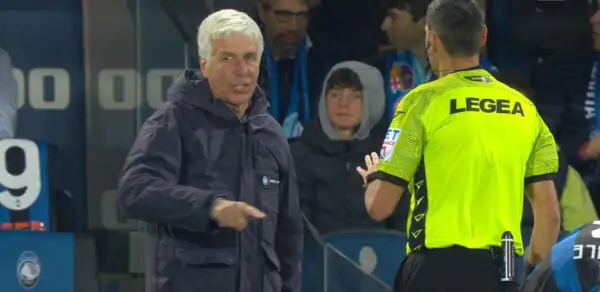 “Questa è una vergogna” ha urlato Gian Piero Gasperini all’arbitro Maurizio Mariani nel corso della ripresa. Tutta la panchina del Napoli allora è scattata in piedi e si è lamentata per un presunto fallo di Osimhen.