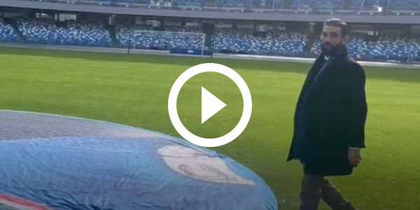 In particolare, il vice presidente della SSC Napoii, Edoardo De Laurentiis, ha deposto un mazzo di fiori sull’immagine esposta al centro del campo.