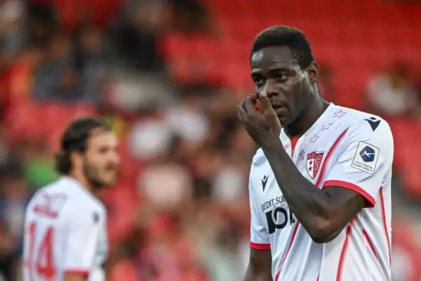 FC Sion's Italian forward Mario Balotelli looks on during the Swiss super league football match between FC Sion and FC Basel at the Tourbillon stadium in Sion, on September 3, 2022. - Balotelli signed on August 31, 2022 a two-year contract with Swiss side FC Sion, the 11th club of his career. (Photo by Fabrice COFFRINI / AFP) (Photo by FABRICE COFFRINI/AFP via Getty Images)
