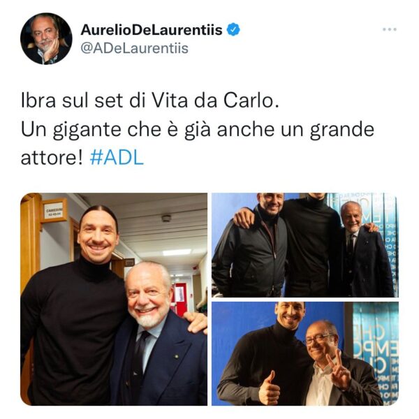 In questi minuti, anche il presidente del Napoli Aurelio De Laurentiis ha pubblicato uno scatto con il campione svedese. “Un gigante che è già anche un grande attore”, ha scritto il patron su Twitter.