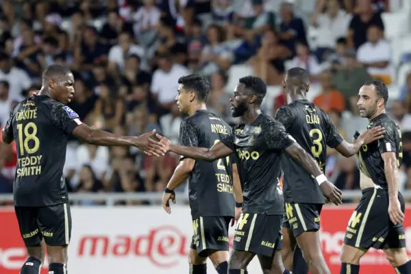 Lille's French midfielder Jonathan Bamba (C) is congratulated by teammates after scoring a second goal for his team during the French L1 football match between AC Ajaccio and Lille at Stade Francois Coty in Ajaccio on the French Mediterranean Island of Corsica on August 26, 2022. (Photo by Pascal POCHARD-CASABIANCA / AFP) (Photo by PASCAL POCHARD-CASABIANCA/AFP via Getty Images)