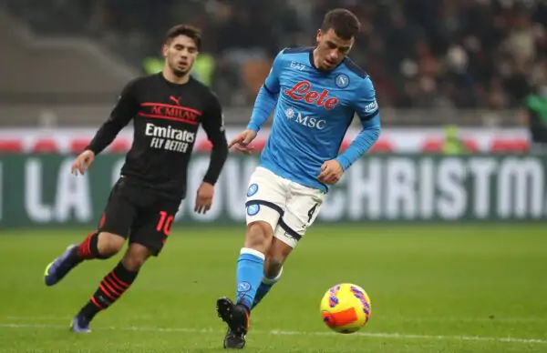MILAN, ITALY - DECEMBER 19: Diego Demme of SSC Napoli in action during the Serie A match between AC Milan and SSC Napoli at Stadio Giuseppe Meazza on December 19, 2021 in Milan, Italy. (Photo by Marco Luzzani/Getty Images)