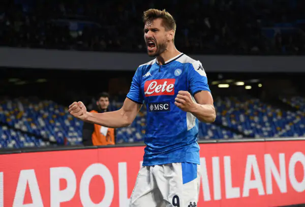 NAPLES, ITALY - DECEMBER 01: Fernando Llorente of SSC Napoli celebrates after scoring the 1-0 goal during the Serie A match between SSC Napoli and Bologna FC at Stadio San Paolo on December 01, 2019 in Naples, Italy. (Photo by Francesco Pecoraro/Getty Images)