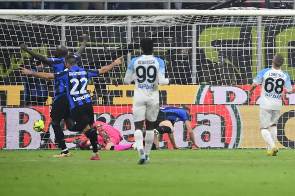 Inter Milan's Bosnian forward Edin Dzeko (2ndR) scores the opening goal during the Italian Serie A football match between Inter Milan and Napoli at Giuseppe Meazza stadium in Milan, on January 4, 2023 (Photo by Isabella BONOTTO / AFP) (Photo by ISABELLA BONOTTO/AFP via Getty Images)