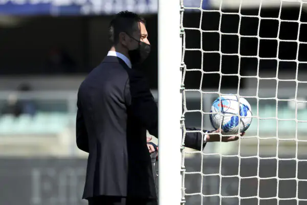 VERONA, ITALY - MARCH 13: Referee Daniele Doveri looks on before the Serie A match between Hellas and SSC Napoli at Stadio Marcantonio Bentegodi on March 13, 2022 in Verona, Italy. (Photo by Giuseppe Cottini/Getty Images)