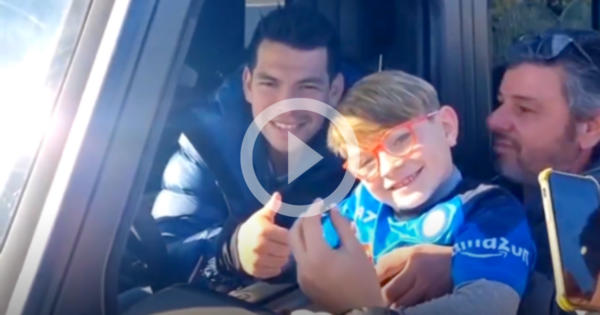 Ebbene, come testimoniato dalle immagini di SpazioNapoli, c’è stato un gran bel episodio che ha avuto come protagonista Hirving Lozano. Il Chucky è stato avvicinato da un piccolo tifoso azzurro che gli ha chiesto una foto, così il messicano non solo – dall’interno della sua auto – si è prestato al selfie, ma ha anche voluto fare un regalo al baby tifoso: ha regalato al giovane supporters azzurro la sua maglia con tanto di autografo.