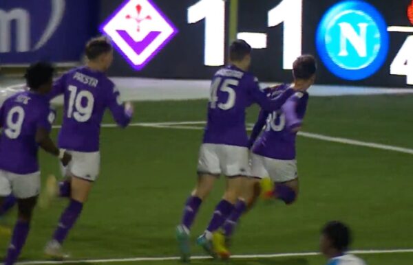 Primo tempo sostanzialmente equilibrato, con il Napoli che parte meglio e compre in maniera egregia tutto il campo. Pian piano viene fuori la Fiorentina, in particolare brava a sfruttare gli uno contro uno dei suoi esterni offensivi. E proprio da una giocata individuale nasce il gol dei viola.
