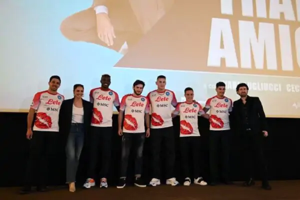 Nella fattispecie, i giocatori presenti all’evento sono Giovanni Simeone, Victor Osimhen, Khvicha Kvaratskhelia, Pierluigi Gollini, Giacomo Raspadori e il capitano azzurro Giovanni Di Lorenzo.