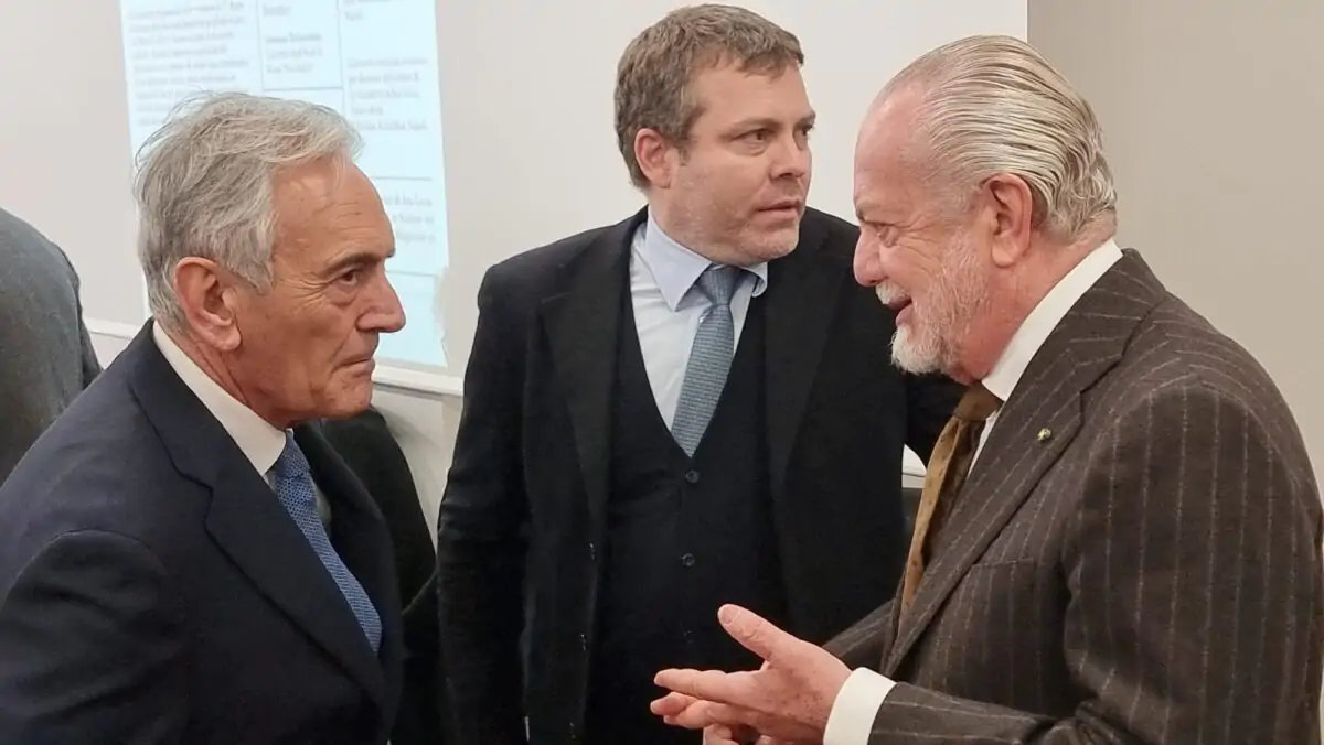 Il presidente del Napoli, Aurelio De Laurentiis, ha preso parte all’inaugurazione della prima cattedra universitaria dedicata alla “Giuridicità delle regole del calcio“, voluta dal giurista Guido Clemente di San Luca, presso il Dipartimento di Giurisprudenza dell’Università degli Studi della Campania Luigi Vanvitelli a Santa Maria Capua Vetere.