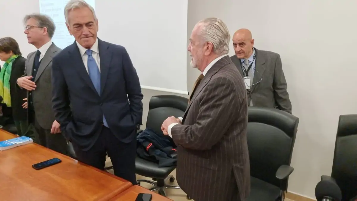 All’evento ha preso parte anche il presidente della FIGC, Gabriele Gravina, che ha introdotto l’argomento e l’importanza di trovare nuove risorse per il calcio italiano. Proprio nel corso del suo discorso, il presidente Gravina ha faticato a farsi sentire a causa del troppo chiacchiericcio in aula. A quel punto è intervenuto Aurelio De Laurentiis che ha redarguito i tanti ragazzi presenti: