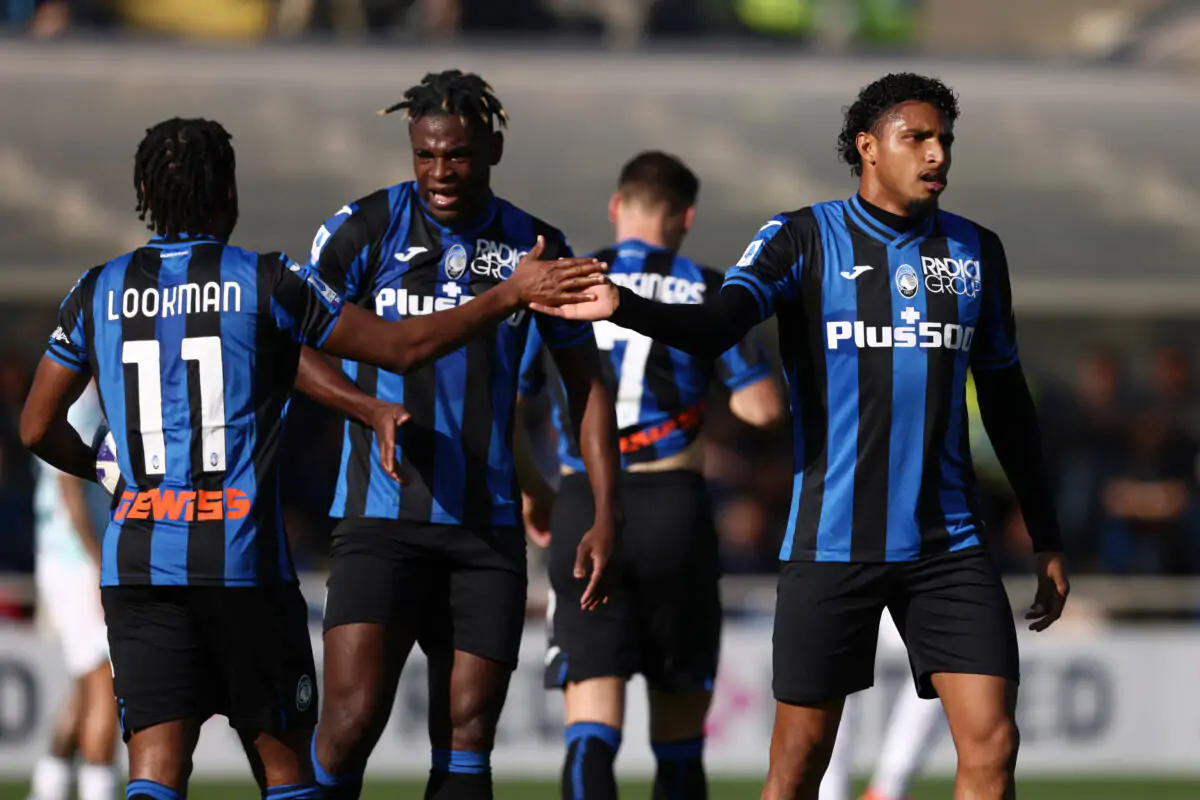 Atalanta BC v FC Internazionale - Serie A Ademola Lookman of Atalanta BC celebrates with Ederson of Atalanta BC and Duval Zapata of Atalanta BC during the italian soccer Serie A match Atalanta BC vs Inter - FC Internazionale on November 13, 2022 at the Gewiss Stadium in Bergamo, Italy Bergamo Italy PUBLICATIONxNOTxINxFRA Copyright: xFrancescoxScaccianocex originalFilename:livemedia-atalanta221113_npiHW.jpg