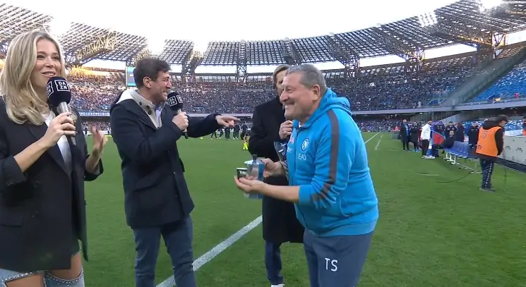 Il mitico Tommaso Starace si è avvicinato ai microfoni del terzetto composto da Diletta Leotta, Ciro Ferrara e Massimo Ambrosini esclamando: “Forza Napoli“.