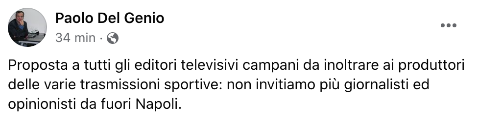Ebbene il giornalista Paolo Del Genio, attraverso la propria bacheca di Facebook, ha pubblicato un messaggio rivolgendosi a tutti gli editori delle TV campane: