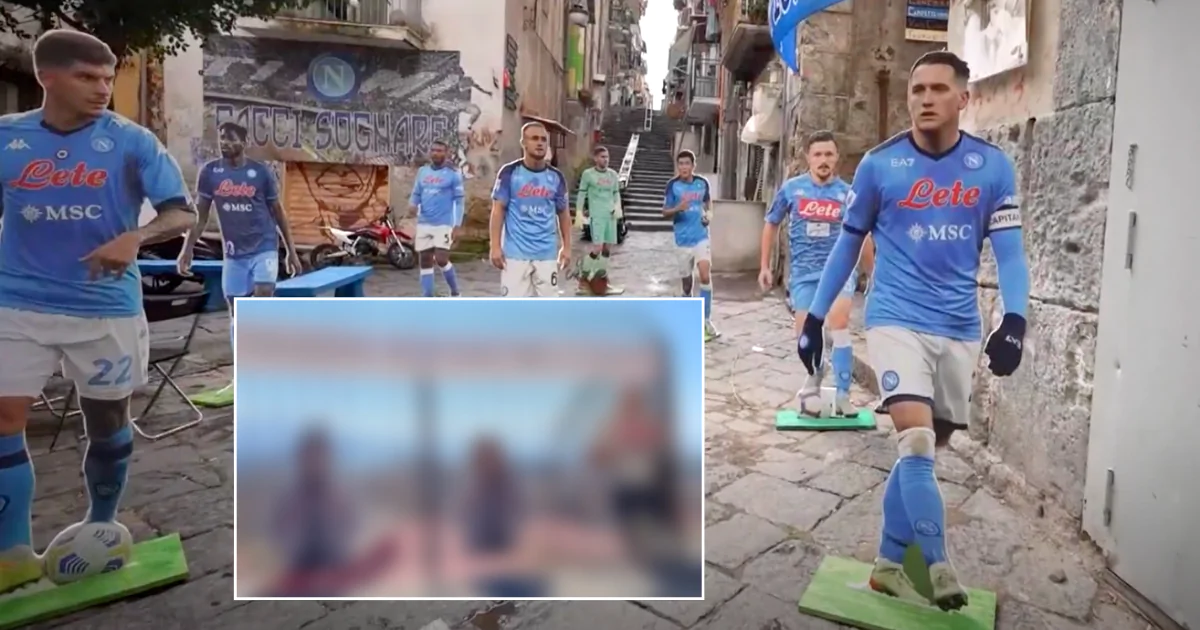 Napoli è in festa, la città è già pronta per esplodere di gioia non appena la vittoria dello scudetto da parte degli azzurri diventerà anche aritmetica. Bandiere, festoni e striscioni di ringraziamento alla squadra sono dislocati un po’ dovunque, non mancano anche cartonati dei calciatori e qualche sfottò alle squadre rivali, in particolar modo la Juventus.