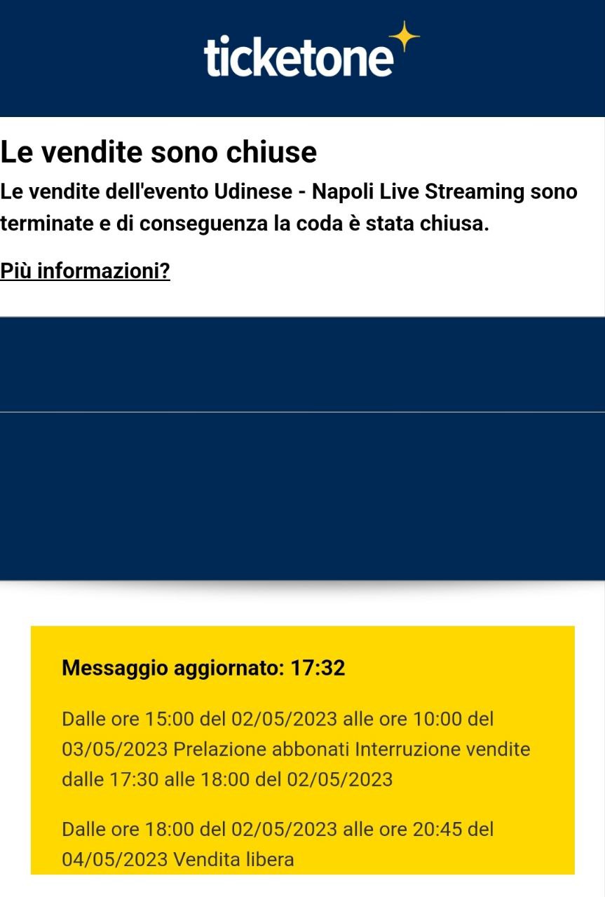 In ogni caso la sensazione è che non sia necessaria per comprare il biglietto per assistere a Udinese-Napoli direttamente dal Diego Armando Maradona insieme ad altre decine di migliaia di persone.