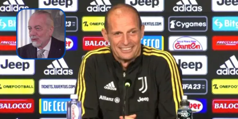 Nella consueta conferenza stampa del post partita, al tecnico bianconero Max Allegri è stato anche chiesto un parere sulle parole di Aurelio De Laurentiis che ha più volte ribadito di aver perso degli scudetti in passato per colpa di irregolarità, attaccando chiaramente la Juventus. Questa la risposta di Allegri.
