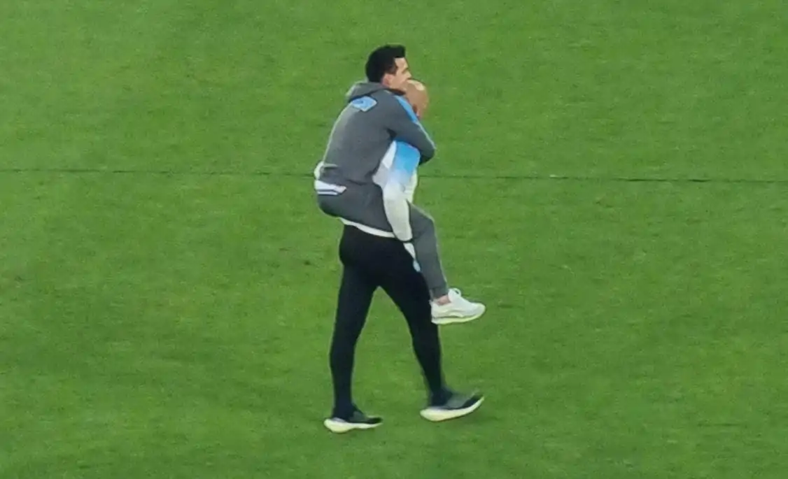 Grandissima dimostrazione dell’affetto esistente tra staff e giocatori del Napoli. Hirving Lozano infatti, essendo un protagonista di questa stagione storica per i partenopei, non poteva mancare alla festa Scudetto e Daniele Baldini ha deciso di permetterglielo nonostante il giocatore messicano non possa camminare portandolo in bracco in campo con i compagni.