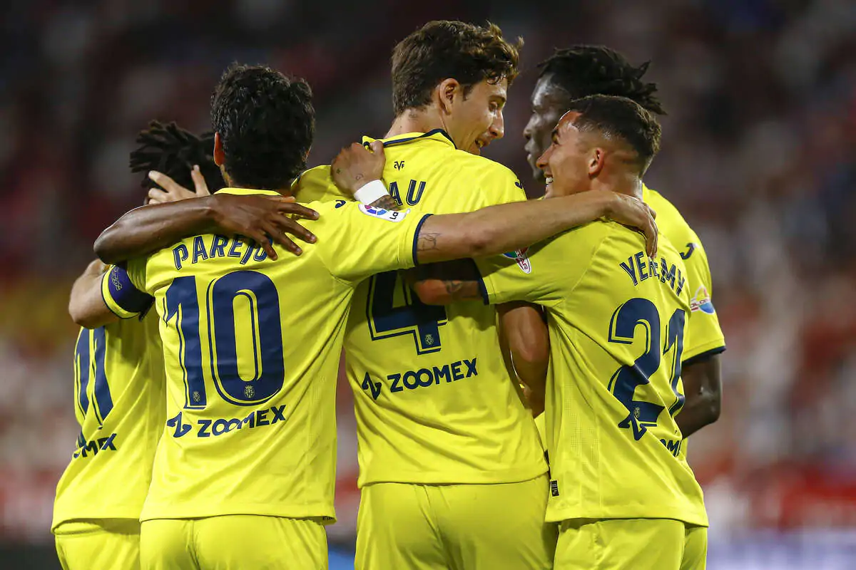 Sevilla FC - Villarreal CF. La Liga Santander Pau Torres, Yeremy Pino, Dani Parejo of Villarreal during the La Liga match between Sevilla FC and Villarreal CF played at Sanchez Pizjuan Stadium on April 23, 2023 in Sevilla, Spain. kpng Copyright: xAntonioxPozox/xPRESSINx PS_230423_046
