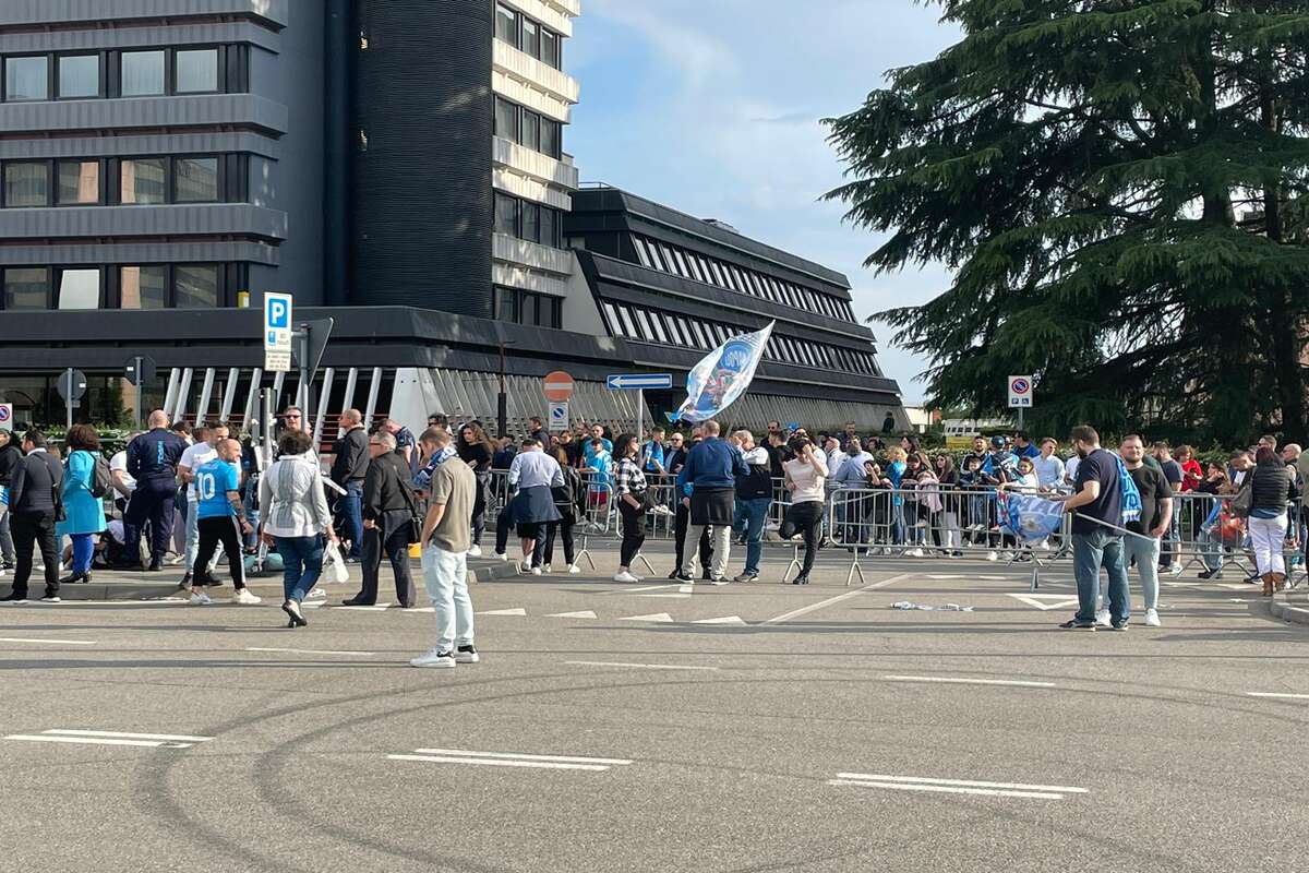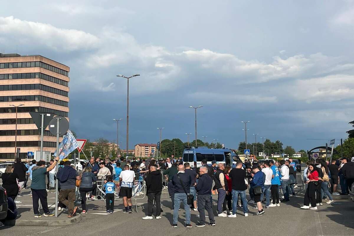 Proprio in questi minuti, infatti, davanti all’hotel Mercure ad Agate Brianza a Monza, ci sono già centinaia di tifosi del Napoli in attesa dell’arrivo dei Campioni d’Italia. Tanti cori e bandiere, napoletani provenienti da tutta la Lombardia si stanno radunando per rendere omaggio a Spalletti e ai calciatori. La squadra, intanto, è attesa a breve.