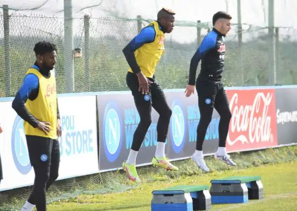 Assente Osimhen per uno stato influenzale. Mario Rui ha svolto lavoro personalizzato in campo.