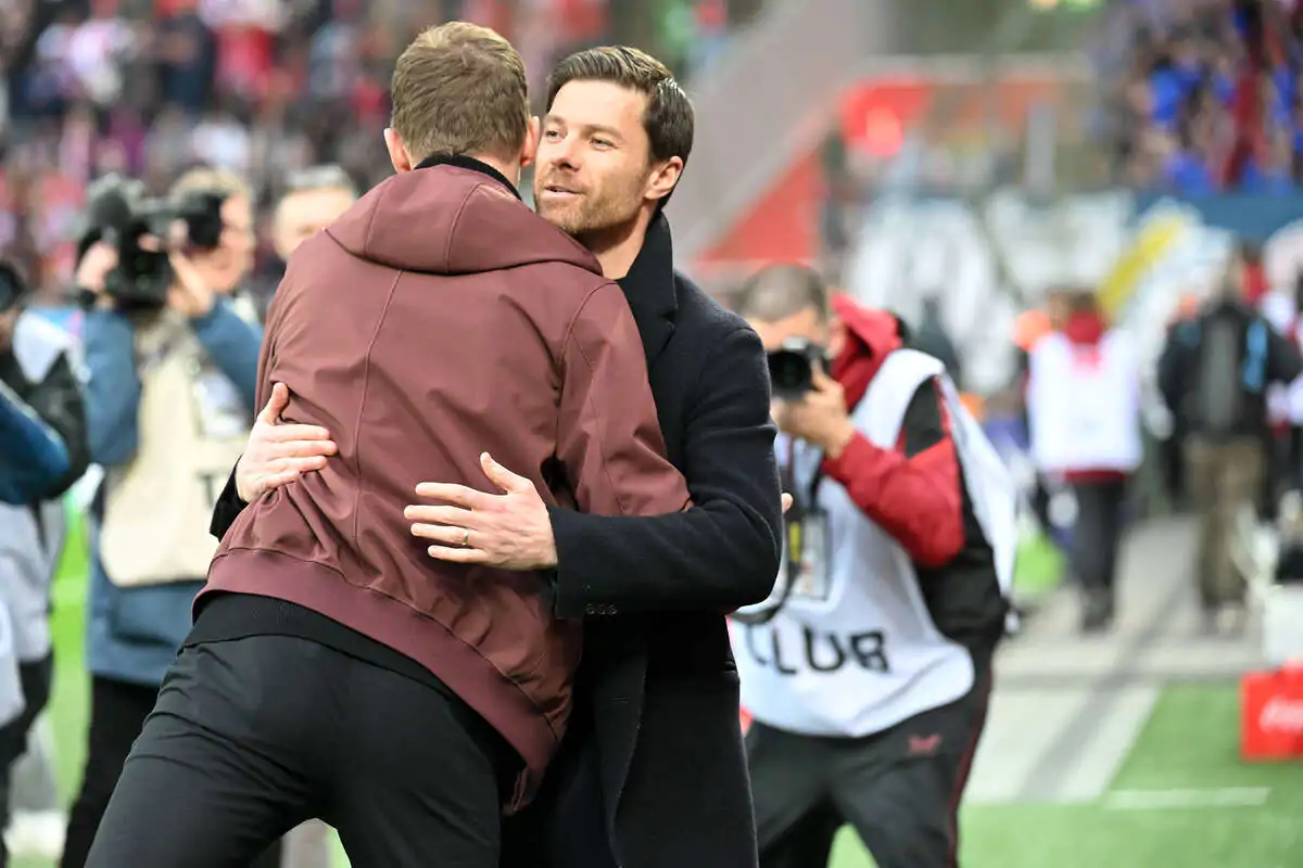 Leverkusen, Bayarena, 19.03.23, GER, Herren, 1.Bundesliga, Saison 2022-2023, Bayer 04 Leverkusen - FC Bayern Muenchen Bild: v.li. Trainer Julian NAGELSMANN Muenchen und Trainer Xabi ALONSO Leverkusen Only for editorial use DFL regulations prohibit any use of photographs as image sequences and/or quasi-video. NRW Deutschland *** Leverkusen, Bayarena, 19 03 23, GER, Men, 1 Bundesliga, Season 2022 2023, Bayer 04 Leverkusen FC Bayern Muenchen Picture from left Coach Julian NAGELSMANN Muenchen and Coach Xabi ALONSO Leverkusen Only for editorial use DFL regulations prohibit any use of photographs as image sequences and or quasi video NRW Germany