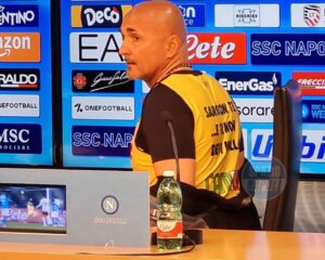 Durante la conferenza stampa, Luciano Spalletti ha svelato un piccolo retroscena sulla casacca d’allenamento utilizzata dal Napoli, indossata proprio dal tecnico azzurro durante la conferenza:
