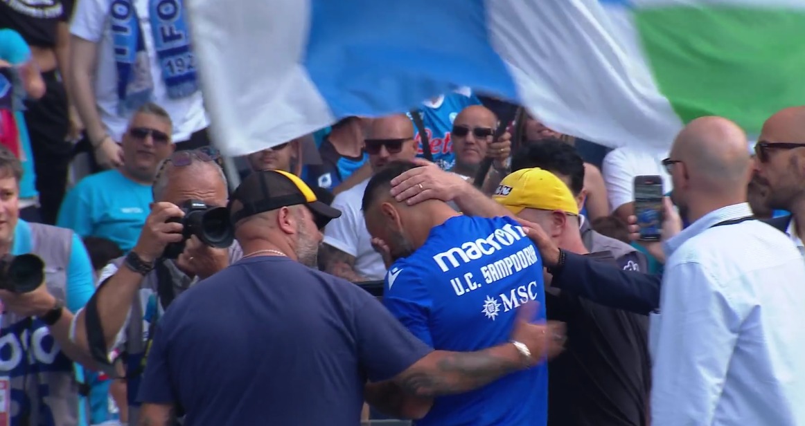 Il centravanti della Sampdoria, oltre ad essere da sempre un tifoso partenopeo, è stato protagonista con la maglia azzurra nella stagione 2009/2010. Una volta consegnatagli la targa, Quagliarella è scoppiato in lacrime per l’emozione.