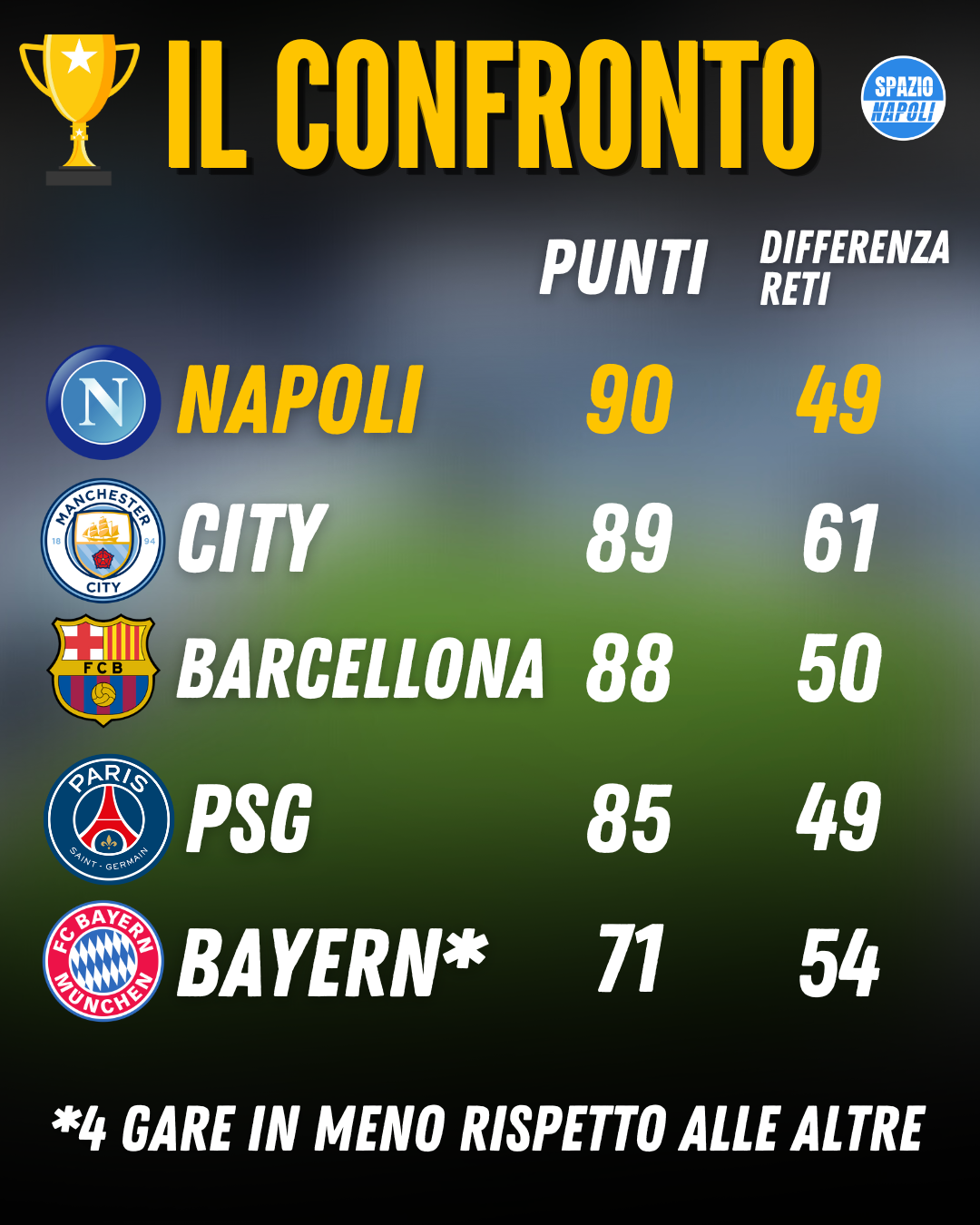 Inoltre, una volta conclusi tutti i maggiori campionati europei, si può notare un dato particolare, leggendo le varie classifiche: il Napoli è la squadra che ha fatto più punti in Europa. Nessuna nei cinque maggiori campionati ha raggiunto quota 90 punti, nemmeno il Manchester City di Haaland e De Bruyne fermo a 89 o il Barcellona di Xavi che non è andato oltre gli 88 punti o ancora il PSG del trio Messi-Neymar-Mbappé che ha vinto la Ligue 1 con “soli” 85 punti.