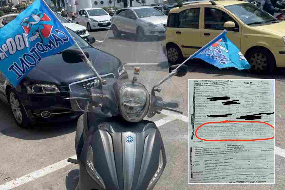 Tifoso del Napoli multato per aver attaccato due bandiere al motorino