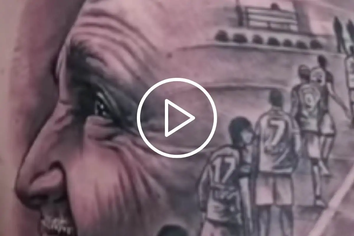 Ricco di significato il tatuaggio in questione, abile a racchiudere nel profilo del volto di un sorridente Luciano Spalletti alcuni dei momenti salienti della stagione. Essi sono data ed ora del trionfo maturato ad Udine con annessa presenza della Coppa, accompagnati dall’immagine simbolo della stagione targata Napoli: gli 8 giocatori a ridosso della metà campo durante il calcio d’inizio, vista per la prima volta a Reggio Emilia e poi divenuta un cliché durante l’annata. Un tributo magnifico allo splendido periodo vissuto dai partenopei, che ha letteralmente fatto impazzire i tifosi imbattutisi nel video di cui sopra.