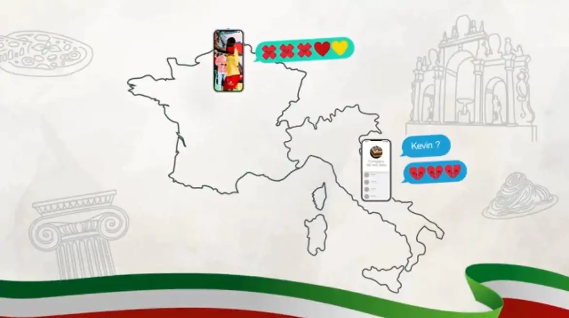 “Cortigiano del sud Italia” si legge, insieme poi all’animazione dello Stivale che scalcia. Il tutto accompagnato dalla musica di mandolino.