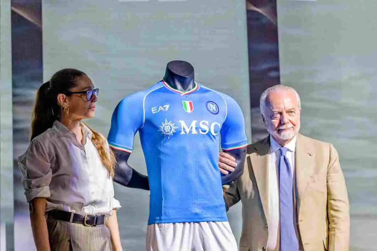 Poco prima dell’inizio dei due ritiri precampionato a Dimaro, il primo, e a Castel di Sangro, il secondo, il presidente De Laurentiis coadiuvato da sua figlia Valentina ha presentato a bordo della Nave MSC World Europa le nuove divise da gioco del Napoli.