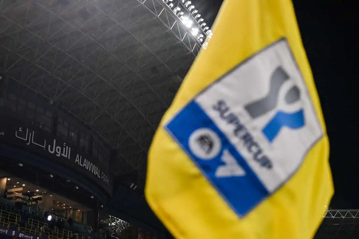 Foto Massimo Paolone/LaPresse 18 Gennaio 2024 Riad (Arabia Saudita) sport, calcio - EA SPORTS FC Supercoppa italiana 2023/2024 semifinale Napoli vs Fiorentina - Stadio Università Re Saud. Nella foto: Bandierina corner Supercup January 18, 2024 Riyadh (Saudi Arabia) sport, soccer - EA SPORTS FC Italian Supercup 2023/2024 semi-final Napoli vs Fiorentina - King Saud University Stadium. In the pic: Supercup Corner Flag