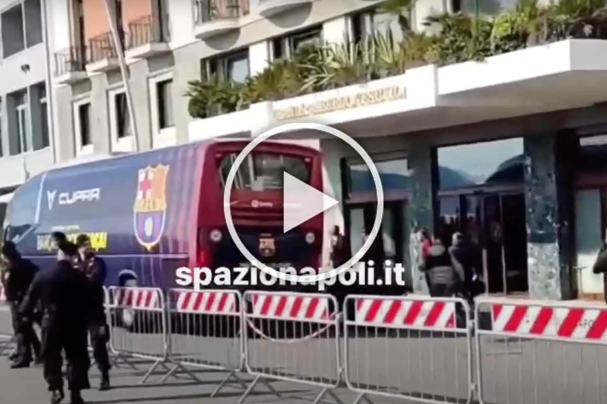 Dal video fornito dai nostri inviati è infatti possibile scorgere circa un centinaio di persone appostate all’esterno dell’albergo, chiaramente transennato e presidiato dalle Forze dell’Ordine. Le prime voci hanno dunque cominciato ad innalzarsi alla prima apparizione del pullman, accolto da un misto di parole di sostegno e dichiarazioni a favore del Napoli. “Forza Napoli” e qualche semplice “buuu” hanno difatti monopolizzato la scena all’esterno dell’Hotel Vesuvio, seppure qualche tifoso ospite è riuscito a far sentire la propria vicinanza al gruppo catalano. Testa bassa, però, per Xavi e i suoi, apparsi sin da subito concentrati e sbrigativi, consapevoli della dura sfida alla quale andranno incontro.